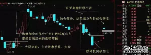 先低买再高抛:持有一定数量股票后,某天该股严重超跌或低开,可以乘这个机会,买入同等或部分数量同一股票,待其涨升到一定高度之后卖出,从而在一个交易日内实现低买高卖,来获取差价利润。