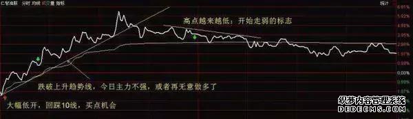 2、分时图上量价不齐,股价上升成交量越小,构成量价背离,则在股价拉高调头时属于卖点;