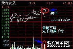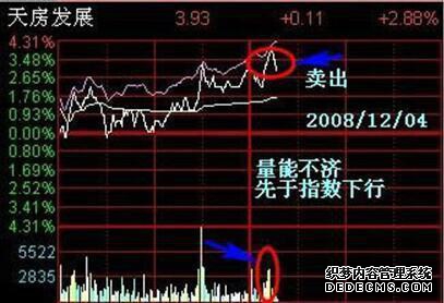 3、个股股价快速拉升,量能却没有持续放大,且均价线也没跟上,则在股价调头时是卖点;